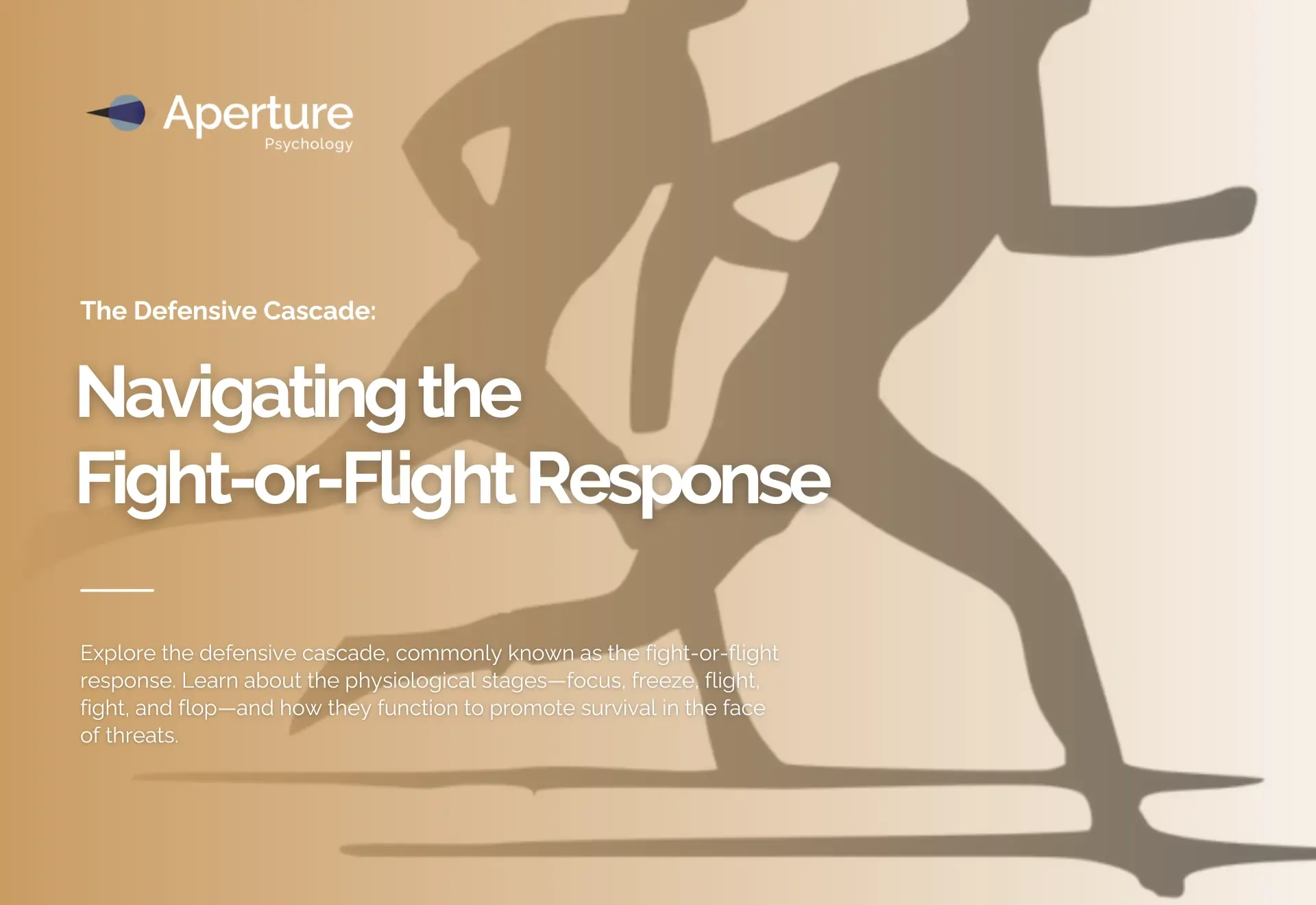 Explore the defensive cascade, commonly known as the fight-or-flight response, with insights from Peter Walker, Clinical Psychologist at Aperture Psychology in Sydney. Learn about the physiological stages—focus, freeze, flight, fight, and flop—and how they function to promote survival in the face of threats.